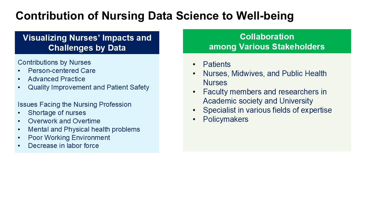 We contribute to well-being through nursing data science and collaboration with various stakeholders.